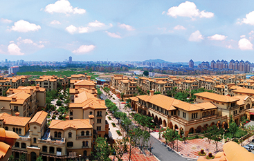 蓝城大型居住区的建筑形态较为丰富,不仅注重多样性的建筑群落,更规划有酒店、商业街、体育健身场所、幼儿园、会所等诸多混合功能的配套建筑,通过城市道路、社区街区组织形成一个餐饮、购物、教育、运动、休闲娱乐等多功能混合的宜居社区。